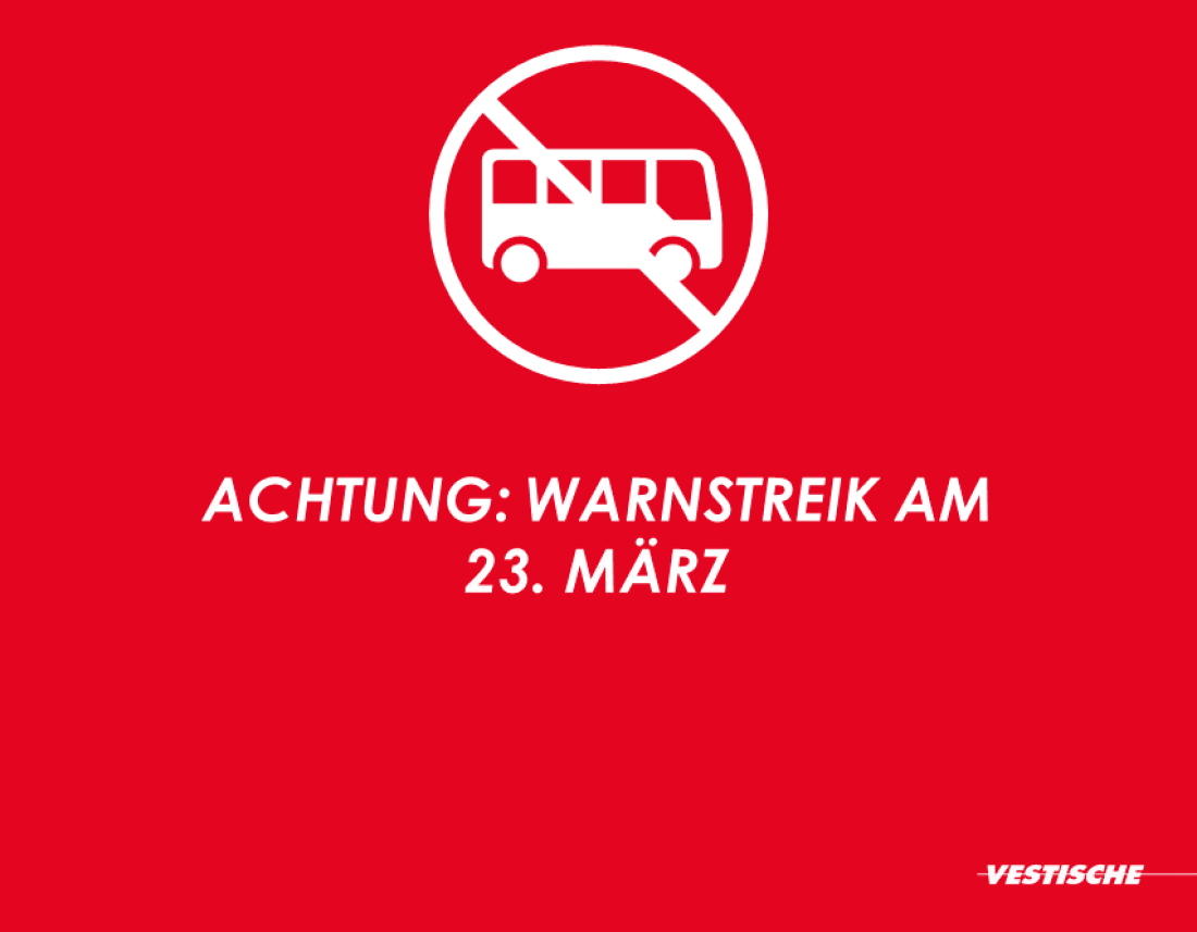 Wegen des von den Gewerkschaften angekündigten Warnstreiks am Betriebshof der Vestischen in Bottrop kommt es am Montag, 23. März 2026, zu massiven Fahrtausfällen in Bottrop und Gladbeck sowie in Teilen von Gelsenkirchen und Dorsten.
