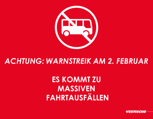 Betrieb stark eingeschränkt: Am Montag, 2. Februar 2026, müssen die Busse der Vestischen auf den Betriebshöfen in Herten und Bottrop stehenbleiben.