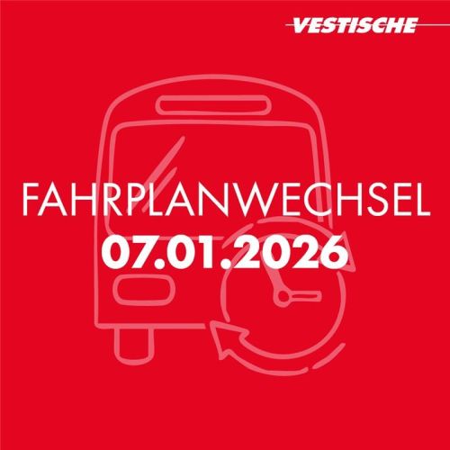 Mit dem Fahrplanwechsel am 7. Januar 2026 setzt die Vestische kleinere Optimierungen im Liniennetz um. Änderungen von Linienwegen sind nicht vorgesehen, auch das Leistungsangebot bleibt weitestgehend unverändert. Die vorgenommenen Fahrplananpassungen basieren auf Auswertungen unserer automatisch erhobenen Fahrdaten sowie wertvollen Rückmeldungen von Fahrgästen und Fahrpersonal.